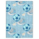 Ilustração de aquarela masculina com bolas de futebol, tênis e listras azuis.