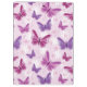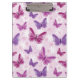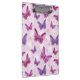 Teste padrão sem emenda de borboletas do vôo nas máscaras dos rosa e dos roxos com as flores brancas sobre o fundo rosa pálido. © e ® Bigstock® - todos os direitos reservados.