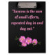 Texto da foto O script Oleo Font Pink Flower Clipboard "Success é a soma de pequenos esforços, repetidos dia após dia." sucesso não é um evento, mas uma jornada. Esta Área de Transferência é muito útil para a Escola, Estudantes de Faculdade quando ela é testada, eles podem usá-la para o Pad, para Escrever seus exames. É útil para o Escritório, as Empresas, a Escola, a Faculdade, etc.