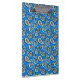 Vibrant paisley patterns in shades of blue, teal, black, and white are arranged on a bold blue background. The design features intricate swirls and dots, creating a dynamic and stylish visual effect.