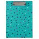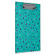 This clipboard features hand-drawn tiny hearts in shades of purple, blue and teal on turquoise.