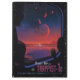 Esta área de transferência apresenta um anúncio maravilhoso, retrô-estilo. A cerca de 40 anos-luz da Terra, um planeta chamado TRAPPIST-1e oferece uma visão de desalento: objetos brilhantes em um céu vermelho, surgindo como versões cada vez maiores de nossa própria lua. Mas estas não são luas. São planetas do tamanho da Terra num espetacular sistema planetário fora do nosso. Esses sete mundos rochosos se unem em torno de sua pequena, escura, estrela vermelha, como uma família ao redor de uma fogueira. Qualquer um deles poderia abrigar água líquida, mas o planeta mostrado aqui, quarto da estrela TRAPPIST-1, está na zona habitável, a área ao redor da estrela onde é mais provável que seja detectada água líquida. Este sistema foi revelado pelo Telescópio Pequeno de Planetas e Planetas (TRAPPIST) e pelo Telescópio Espacial Spitzer da NASA. Os planetas são também excelentes alvos para o Telescópio Espacial James Webb da NASA. Faça uma excursão de salto do planeta através do sistema TRAPPIST-1. Crédito da imagem: Escritório do Programa de Exploração do Exoplaneta NASA