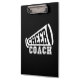 Esta prancheta é mostrada em um impressão de treinador de torcida. Preto colorido Você pode personalizar este item ou comprar conforme mostrado. Imagem licenciada