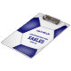 Esta equipe de futebol colore a área de transferência para o treinador de futebol de um menino ou de uma menina apresenta a imagem de uma bola de futebol azul e branca de tamanho abstrato sobre a qual você pode personalizar o nome do treinador mais o nome da escola e mascote e ano/estação escolar - por katz_d_zynes