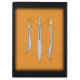 Esta ilustração de Richard H. Fay retrata três espadas da Grécia antiga: uma machaira de solteiro, um xifos de buplite de duas faces, e um kopis de curva dianteira de solteiro.