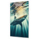Pranchetas Tubarão no mar azul profundo e luz solar