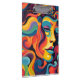Rochas vivas e remendos num arco-íris de cores criam o perfil abstrato de um homem ou mulher com expressão pacífica. Sombras de azul, laranja, amarelo e vermelho se misturam harmoniosamente para traçar traços faciais e cabelos fluidos.