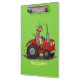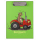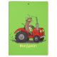 Esta vaca marrom engraçada está dirigindo um trator vermelho. Muito diversão para o agricultor ou amante de vaca!