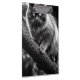 Um gato ameaçador com olhos brilhantes, dentes afiados e garras grandes é capturado em um cenário escuro e estranho. Suas cerdas de pele à medida que deixa um "miau" arrepiante, incorporando ferocidade e mística. Sombras e uma atmosfera assombrosa aumentam sua presença aterradora.