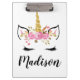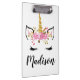Pranchetas Unicorn Face com Eyelashes Nome Personalizado