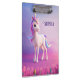 Pranchetas Unicórnio Branco Bonito Com Mano Rosa E Azul
