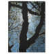 Uma silhueta de galhos de árvores ao sol da tarde, com novas folhas de Primavera.