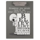 Little Boy fica atrás de um gráfico de olhos gigante cobrindo seu olho com um ocluder/remo. A citação, "Às vezes você simplesmente tem que ver o que os outros veem em você." O gráfico mostra o Little Boy, Big Dreams citação de "Acredite no Inacreditável que é você!" ©Little Boy, Big Dreams, LLC e David A. Carrizales e trabalho de arte © Christie Black of Creations do Coração.