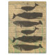 Baseado em desenhos antigos de baleias, esta é uma colagem rústica de trabalho de arte de baleias com baleias, texto Moby e mapa antigo ao fundo.