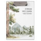 Introducing our Watercolor Green Forest Landscape Personalized Clipboard. Featuring illustration of woodland and mountain. Suitable as a gift for nature lovers