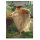 Este design apresenta uma pintura do artista inglês Sir Edward John Poynter (1836-1919), que exerceu as funções de presidente da Academia Real de Artes. Mostra uma jovem adorável que está vestindo um vestido de cor creme diafanoso feito de tecido fino. Os contornos e curvas do seu belo corpo podem ser vistos através da roupa. A mulher está caminhando em um idílio rural enquanto coleciona algumas flores vermelhas que estão crescendo na encosta da colina. Ela tem uma cesta em uma mão que está usando para coletar as flores coloridas brilhantes que colecionou. É uma representação incrivelmente impressionante da beleza feminina e dos prazeres da natureza. Há capim crescendo nas colinas e recheios ao redor da jovem, e há um aglomerado de árvores crescendo no horizonte. O trabalho artístico original foi pintado por Edward Poynter em 1880.