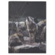 Uma bela foto de uma matilha de lobos numa formação de rochas. Um excelente presente para qualquer amante de lobo. Foto de Thomas Bonometti.