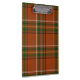 Padrão de tartã em tecido cruzado com uma paleta de cores quentes e rústicas. Uma base laranja queimada dominante é sobreposta por faixas profundas de verde floresta e acentuada por listras finas brancas e amarelo-dourado, criando uma estética clássica inspirada em tecidos tradicionais e tons outonais.