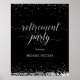 Este elegante e festivo poster de valor do partido da aposentadoria apresenta um confete prateado (folha simulada) com letras correspondentes que dizem "Partido da aposentadoria" em uma bela fonte de escrita. A cor de fundo é preta, mas pode ser alterada para qualquer cor de sua escolha. Personalize o sinal com suas próprias informações - uma maneira fácil e simples de criar decoração personalizada.
