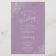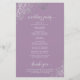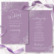 Estes programas de casamento são elegantes e saborosos, enquanto ainda são favoráveis ao orçamento. O design apresenta um local de folha fina de cinza prateada ornamentado com texto de cinza pálido sobre um fundo púrpura poeirento ou de cor lavanda. A tipografia apresenta uma caligrafia antiga em script, e há espaço para detalhes sobre a cerimônia, a festa noiva e um obrigado curto para você.