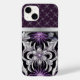 Caso-Porta iPhone 14 Caso De Prata Preta Púrpura Floral Vitoriana Preta