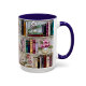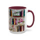 Traga um toque de elegância e charme literário para sua rotina diária com esta linda caneca de prateleira de livros em estilo vitral.