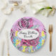 Prato de festa de papel com padrão de flor de rosa vermelha. Criado a partir das minhas aquarelas originais.