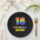 Este alegre, divertido e colorido design de papel de aniversário apresenta um grande número "16" e a mensagem "FELIZ ANIVERSÁRIO", ambos coloridos com um padrão inspirado no gradiente do espectro do arco-íris, junto com um nome personalizado amarelo ousado. Tem um fundo de cor preta. Pratos de papel com tema de aniversário como este podem ser divertidos de ser usados em uma celebração sendo realizada para homenagear alguém que comemora seu décimo sexto aniversário. [~Z0000488]