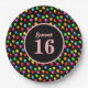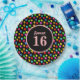 Doce 16 e Balões Festivos Multicoloridos a preto. Texto e número podem ser personalizados.