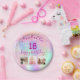 Prato De Papel 18º aniversário foto rosa púrpura holográfico