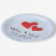 Prato De Papel 2 Papel Vermelho Corações sobre Casamento Azul-Mar