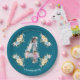 Prato De Papel 4.º Aniversário Colagem de Fotos Teais Azul Flor A