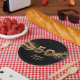 Prato De Papel 50ª Festa de aniversário, preto moderno e Dourado