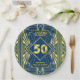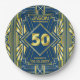 Prato De Papel 50º aniversário Art Deco Dourado Excelente Azul Ga