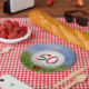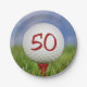 bola de golfe no chá vermelho na grama para o 50º aniversário