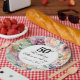 Essa placa do Aniversário do Casamento Floral Elegante com uma caligrafia elegante pode ser facilmente personalizada com os nomes dos casais.