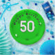 Fecho de uma bola de piclebol verde neon por 50 anos. Todo o texto pode ser alterado ou excluído.