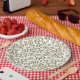 Prato De Papel 50º Aniversário Padrão do Número Dourado/Branco