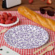 Prato De Papel 50º Aniversário Padrão Roxo/Branco