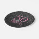 Placas de papel dos confetes fiftieth da festa de aniversário festiva, de prata da mulher no rosa, preto e confetes brilhantes do brilho da folha de prata do falso. Lê 50 & fabuloso no rosa e nas cinzas. O fundo preto com brilho de prata grosso dispersado dos confetes do olhar pontilha o efeito. Fontes da festa de aniversário de mulher elegante para pessoas de 50 anos. Os guardanapo de papel de harmonização e outras 50th fontes fabulosas da festa de aniversário estão em nossa loja de Zazzle.com/angela65.