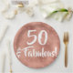 Celebre os aniversários com um talento. "50 (idade/ano pode ser personalizado) e fabuloso" em textos brancos de pincel modernos sobre fundo de cobre e coração.