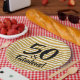 Celebre girar 50 e Fabuloso com este elegante design de placa de papel. Uma fonte em negrito em listras de ouro simuladas em placas de papel! CORRESPONDENDO a itens na nossa loja.