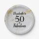 Convide amigos para comemorar seu amado Fabuloso 50º Aniversário com este ousado design de 50º aniversário que é fácil de personalizar apenas para aquela aniversariante especial. 50 e Fabulosas placas de papel em ouro e cinza marmoream com texto preto moderno.