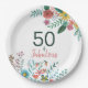 50 e fabuloso elegante floral aquarela prato de papel para sua festa de 50 anos