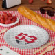 Fechamento do padrão da bola de golfe branca com um clube de golfe para a 53ª festa de aniversário. A idade é editável. O número e o clube de golfe podem ser eliminados.