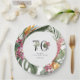An elegant and simple tropical 70th birthday design that is sophisticated and classy, this napkin has palm fronds, hibiscus, fig blossoms, anthuriums, bird of paradise, and orchids adorn the number "70" with beauty and elegance for this special milestone birthday celebration. Below the age, an elegant text template with serif font can be personalized with your guest-of-honor's name. It's a great choice for birthdays celebrated along the coast or with a tropical theme. These plates come in 2 sizes; shown here in the 7-inch diameter size, they are also available in a 9-inch diameter size.