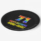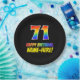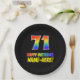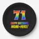 Este design de prancheta de aniversário colorida, divertida e alegre apresenta um grande número "71" e a mensagem "FELIZ ANIVERSÁRIO", ambos tendo um gradiente de padrão inspirado no espectro do arco-íris, junto com um nome editável amarelo ousado. Tem um fundo de cor preta. Pratos de papel com tema de aniversário como este podem ser divertidos de ser usados numa festa que está sendo realizada para celebrar o aniversário de 710 ruas de alguém. [~Z0000488]