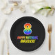 Este design de folha de papel colorida, divertida e alegre apresenta um grande número "8" e a mensagem "FELIZ ANIVERSÁRIO", ambos tendo um gradiente de padrão inspirado no espectro do arco-íris, juntamente com um nome personalizado amarelo ousado. Tem um fundo de cor preta. Pratos de papel com tema de aniversário como este podem ser divertidos de usar numa festa para celebrar o 8º aniversário de alguém. [~Z0000488]