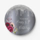 Prato De Papel 80 de aniversário florescente de prata brotando fl