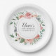 Prato De Papel 80 Floral Rosa Dusty Aniversário Obrigado